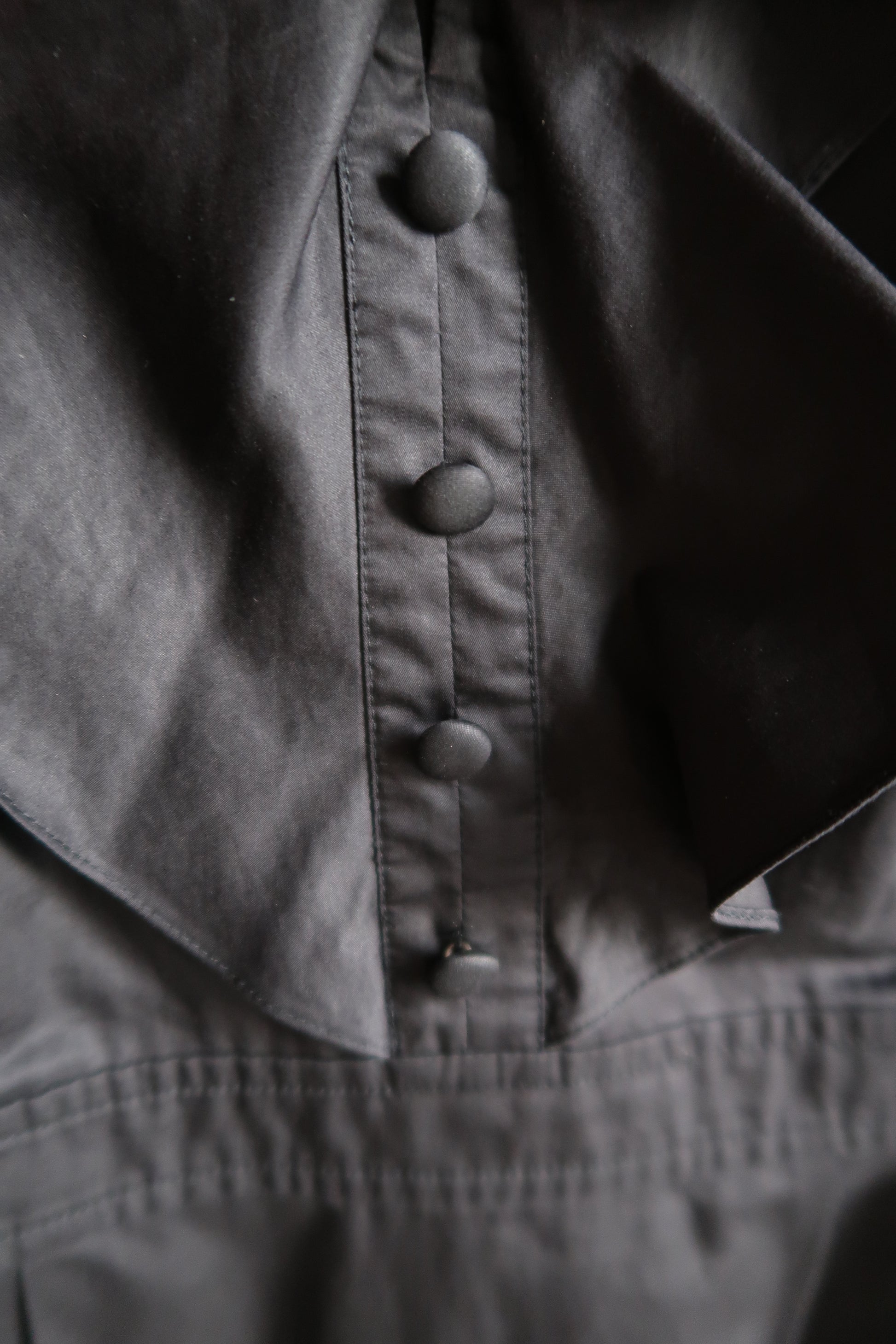 Elevate your wardrobe with this sophisticated button-up ruffled dress, designed for those who appreciate refined details. The cascading ruffles add movement and dimension, while the front button closure offers versatile styling options—wear it buttoned for polished elegance or open as a layering piece. Crafted in classic black, this dress transitions seamlessly from day to evening, making it an essential addition to any collection. Perfect for creating effortless, put-together looks with minimal effort.