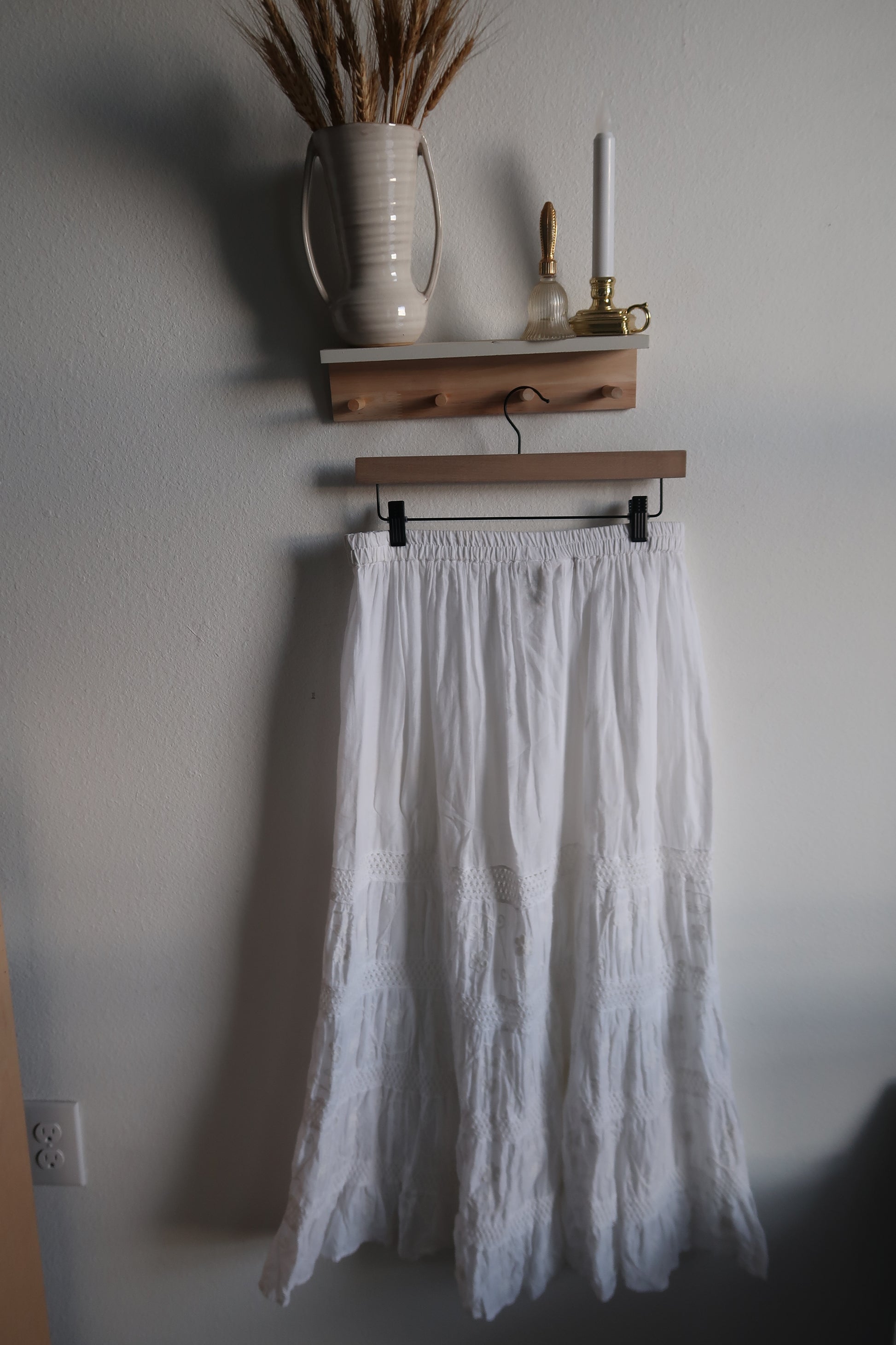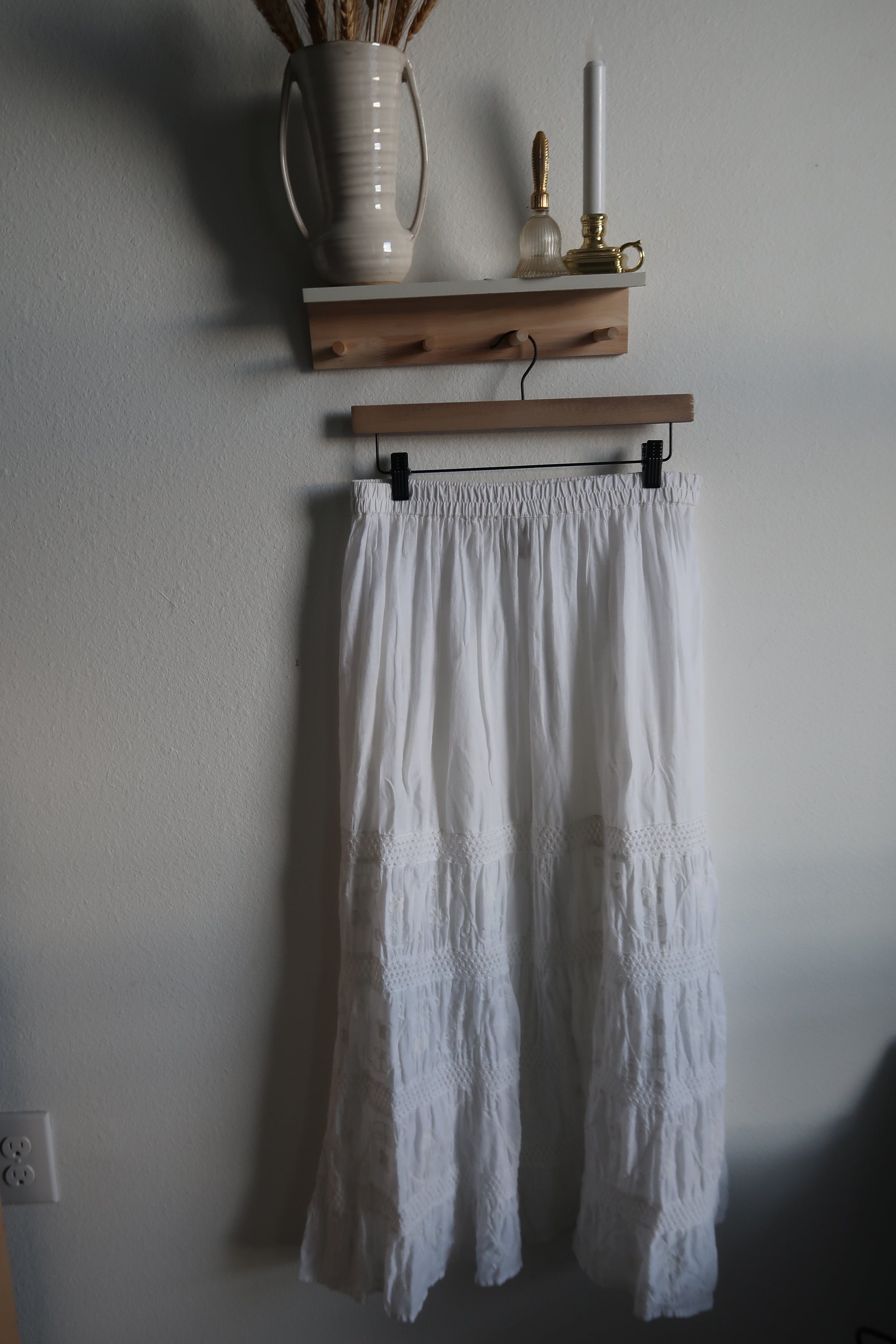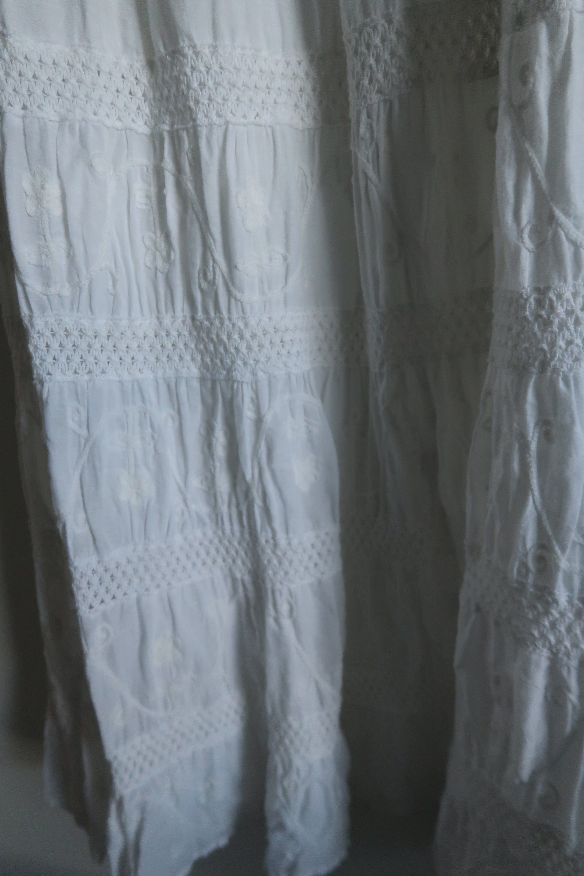 Elevate your wardrobe with this sophisticated embroidered maxi skirt, where intricate needlework meets flowing elegance. Crafted with meticulous attention to detail, the delicate embroidery adds visual depth and artisanal charm to a timeless silhouette. The generous maxi length provides graceful movement and versatile styling options, transitioning seamlessly from casual daytime wear to refined evening occasions. Perfect for those who appreciate quality craftsmanship and understated luxury in their everyday pieces.